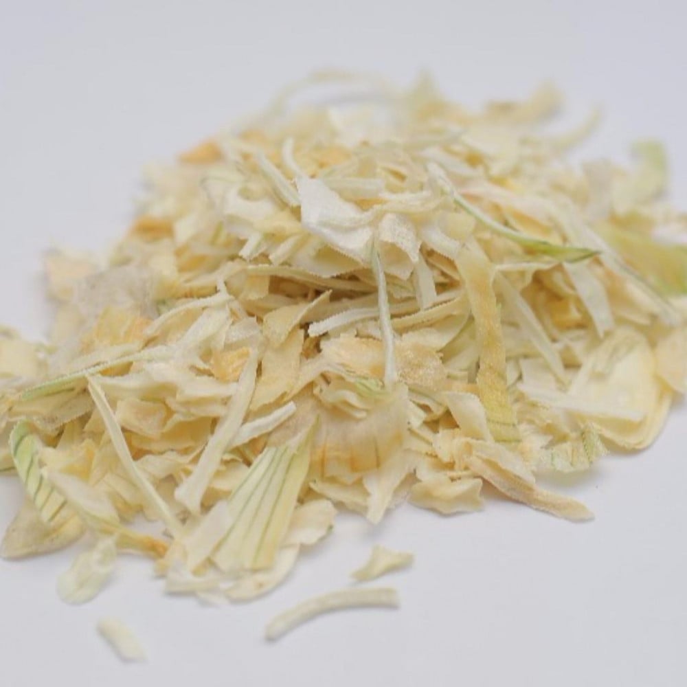 شرائح البصل المجففة هي شكل مجفف من البصل الأصلي. يتم إنتاجها عن طريق تقطيع البصل إلى شرائح رقيقة ثم تجفيفها حتى يتم إزالة معظم الماء منها. وبالتالي، فإن شرائح البصل المجففة تحتوي على تركيز عالٍ من النكهة والإضافة المميزة للأطباق.