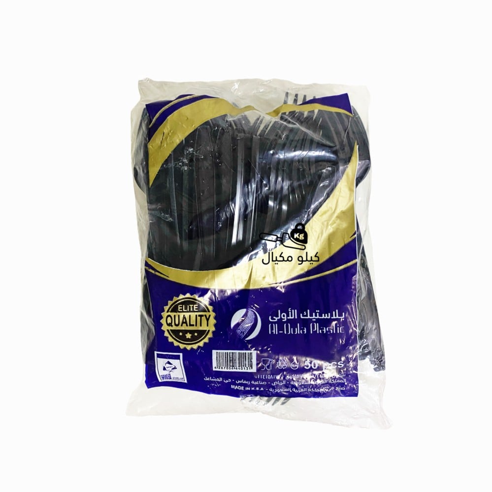 المحتوى : كيس بداخلها 50 حبة شوكة بلاستيك اسود .