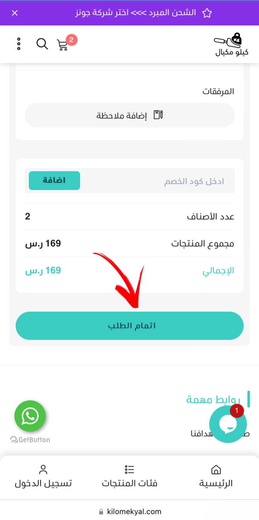 - يتم الضغط على اتمام الطلب