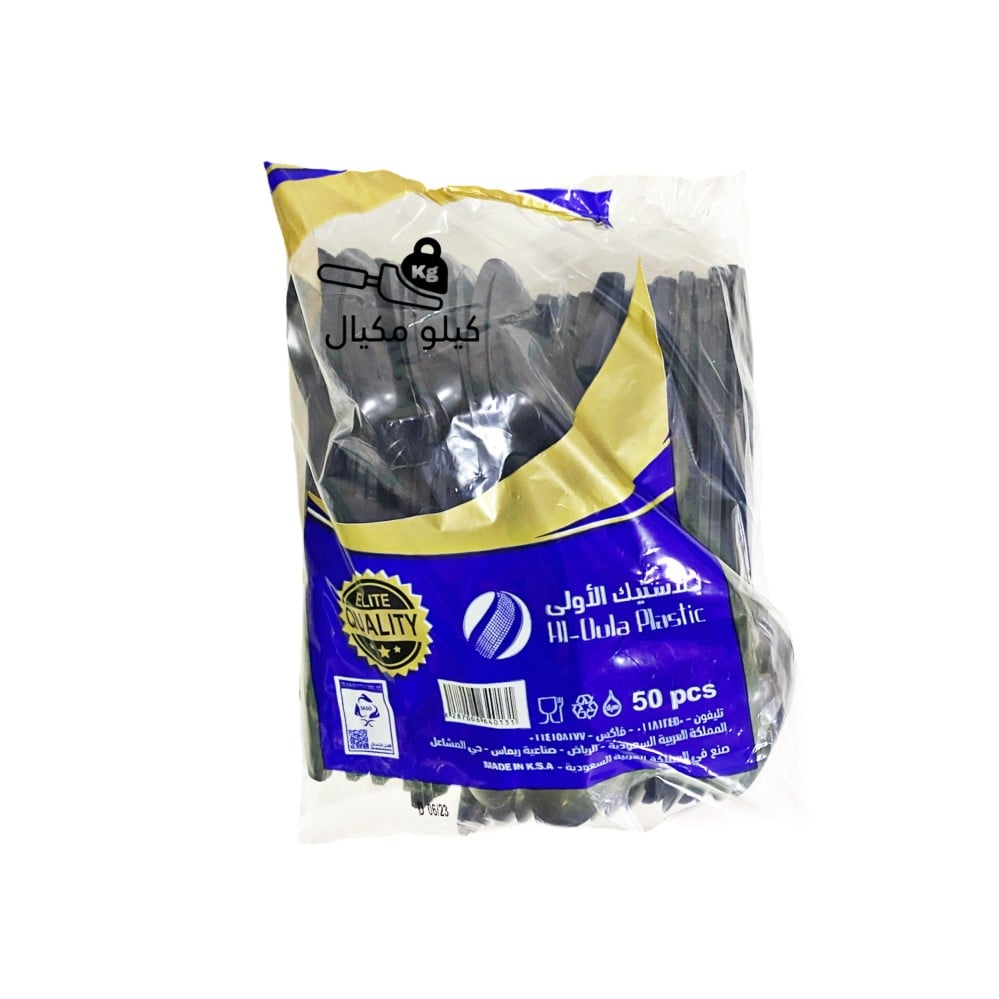 المحتوى : كيس بداخلها 50 حبة ملعقة بلاستيك اسود .