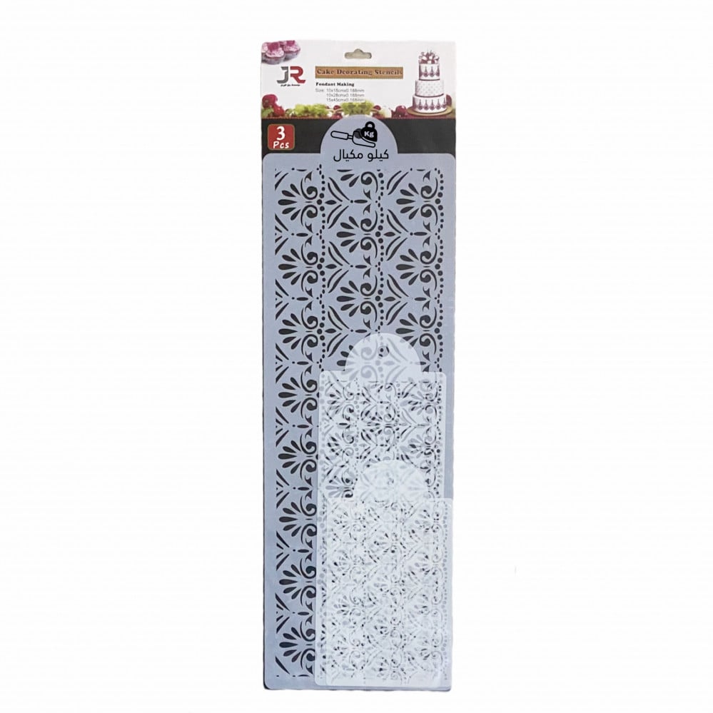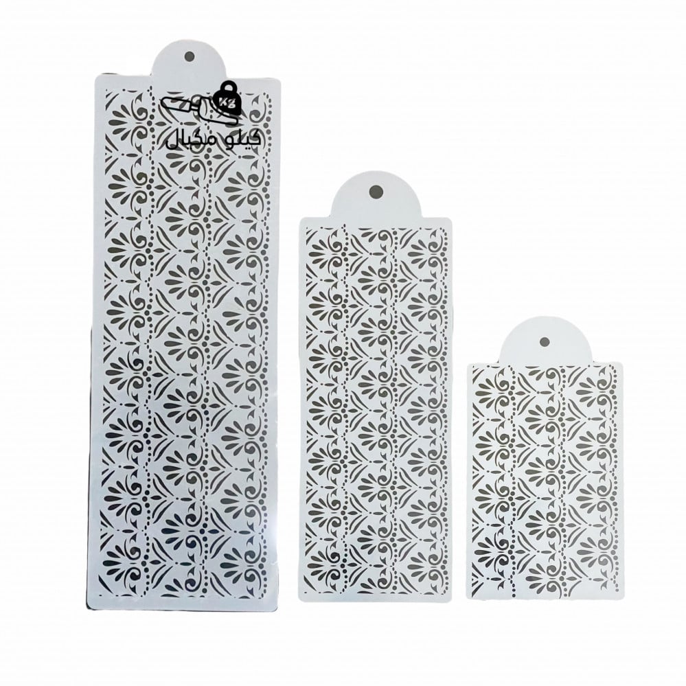 طقم استنسل كيك مكون من ثلاث قطع المقاسات:الحجم الوسط : 10*28cmالحجم الصغير : 10*18cmالحجم الكبير : 15*45cm